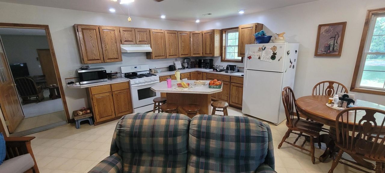 8-acre well-maintained rural property offering space, versatility, and natural beauty. This home was built in 1999, and offers 3,000+ sq ft includes 4 bedrooms, 2 full bathrooms, and multiple flexible living areas designed to meet a variety of needs. A spacious main living area connects to an open-concept kitchen with a center island and 20 linear feet of custom oak cabinetry built by a local craftsman. A breakfast nook with large windows overlooks the front yard where deer are often seen. An additional living room offers even more space for gathering or relaxation. The master bedroom (15x10) features direct access to a dual-entry bathroom with a tub/shower combination and laundry chute. Bedrooms two, three, and four each include ample closet space, with bedroom three offering a 5x6 walk-in. The upper-level (3 steps) living room (18x10) opens to the kitchen and dining nook, creating a bright and connected feel. A 12x8 office/laundry/pantry space includes a built-in ironing board and pass-through chute from the bathroom. The 28x39 multi-use room with exterior entrance and overhead door. This versatile space can serve as a recreation room, hobby/craft area, studio, or workshop. The layout of this home provides flexibility for a wide range of uses. Outdoor living shines with a 16x20 walk-out patio surrounded by wraparound flower gardens, a cozy 9x9 front porch, and stunning 360 views of nature. A 1-acre stocked pond provides opportunities for fishing or simply enjoying the water. The property is home to abundant wildlife, with deer, turkey, and rabbits frequently observed and ample fishing. Additional land features include mature fruit-bearing peach trees, young apple trees and blackberry bushes, a large garden plot, and space for chickens-ideal for those interested in gardening or small-scale homesteading. A major asset of this property is the 30x45 heated shed, built in 2018 has poured concrete floor, 1/2 bath, automatic overhead doors, and clearance for RV storage. This building provides substantial space for equipment, storage, or workshop needs. The home is equipped with propane heat, gas stove, gas water heater, and public water. High-speed Starlink internet is installed, bringing reliable connectivity to this rural setting. Located in Newton, IL (Willow Hill Township), this property offers peaceful surroundings while still being convenient. Sam Parr State Park and the Fairview Drive-In are just minutes away, and shopping and services are available locally. You won't find better neighbors. Larger cities and airports are easily accessible-2 hours to Indianapolis or St. Louis and 3.5 hours to Chicago. Jasper County schools and St. Thomas Parochial School have bus service to driveway. This is a rare opportunity to own a property with acreage, public water, versatile outbuildings, and expansive living space. With scenic views, multiple areas for indoor and outdoor living, and abundant natural surroundings, this home offers both comfort and endless